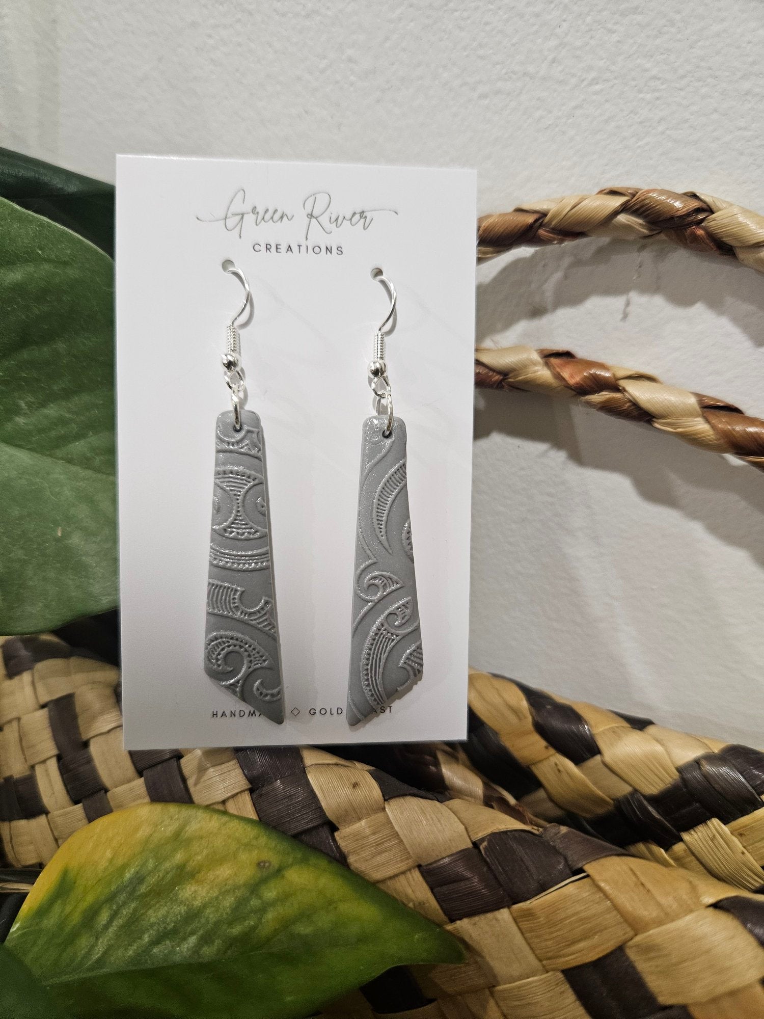 Delicatley handmade polymer clay earrings with embossed maori designs.